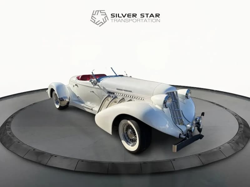 Description: The 1936 Auburn Boattail is a striking example of pre-war American design, celebrated for its sweeping body contours, tapered boattail rear, and luxurious craftsmanship. Finished in white with a red interior, this two-door classic carries a dramatic silhouette that instantly elevates any scene. Ideal for high-end period films, museum-quality visuals, vintage luxury settings, aristocratic character moments, or any production seeking a rare 1930s showpiece with unforgettable on-camera impact.