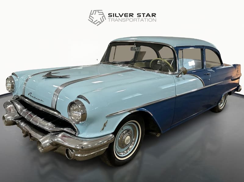Description: A classic 1956 Pontiac Chieftain from the 2nd Generation (1955–1957), showcasing timeless mid-century American styling and strong vintage personality. With its blue exterior and beige-and-blue interior, this Chieftain delivers authentic 1950s character—ideal for period films, retro TV productions, lifestyle shoots, suburban scenes, cruising sequences, and hero vehicle moments. Its elegant proportions and distinctive mid-50s design details make it a standout choice for any project seeking a genuine classic from the era.